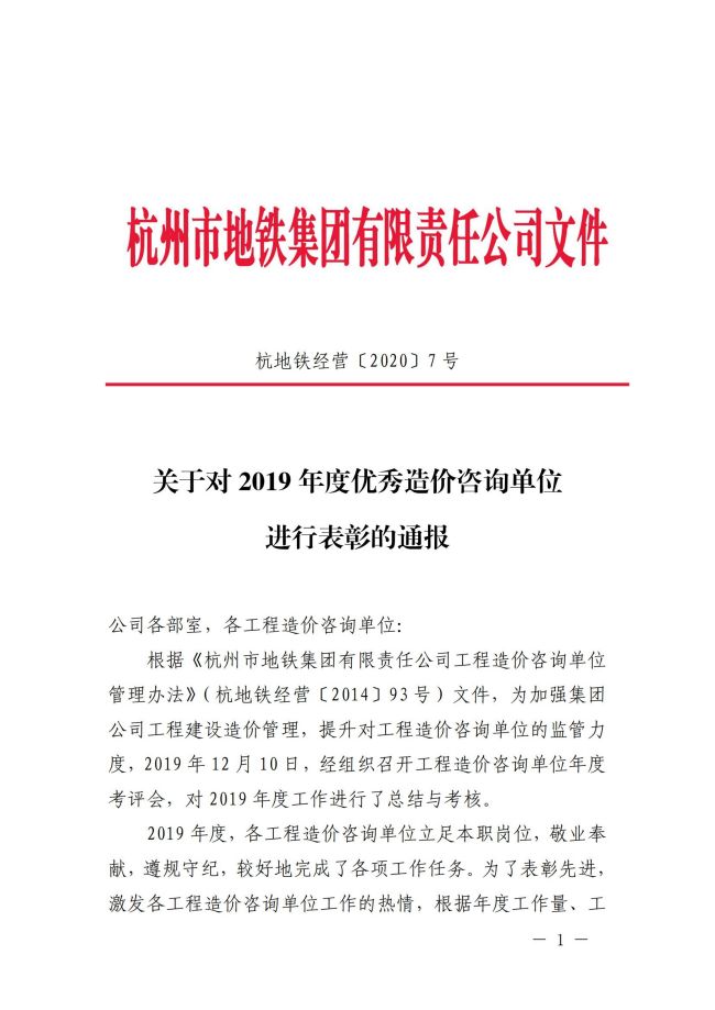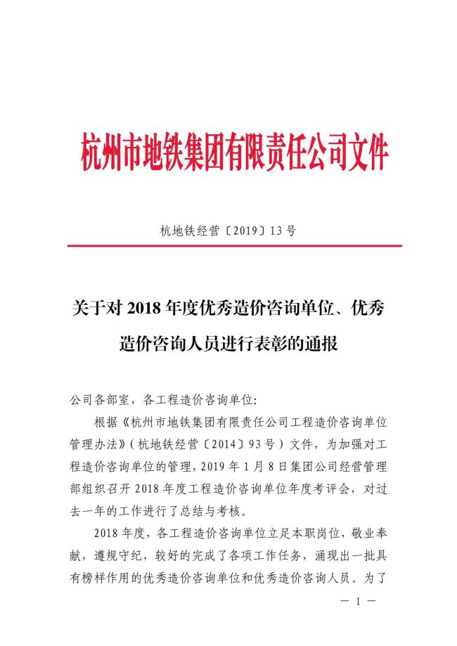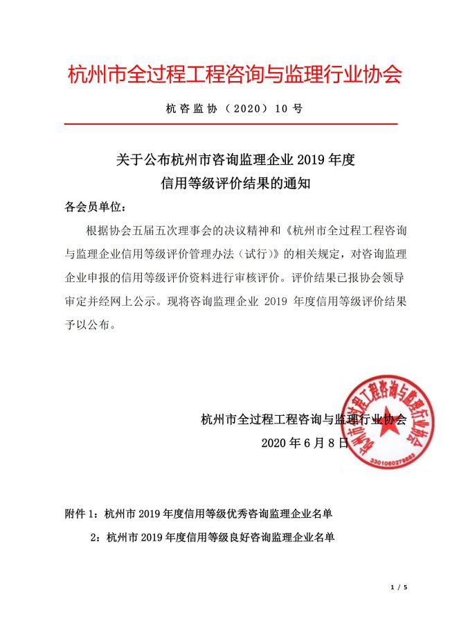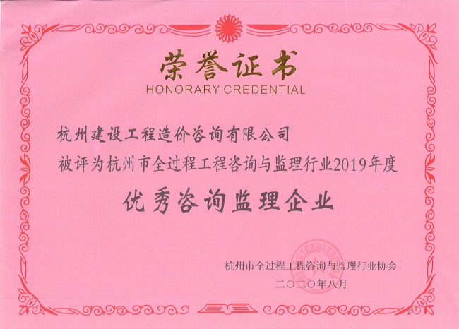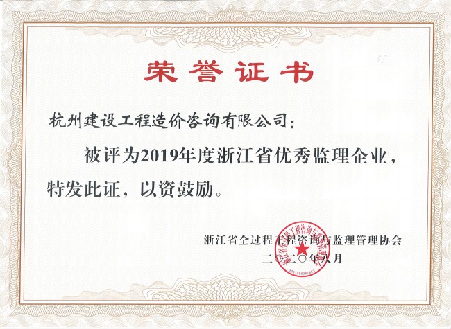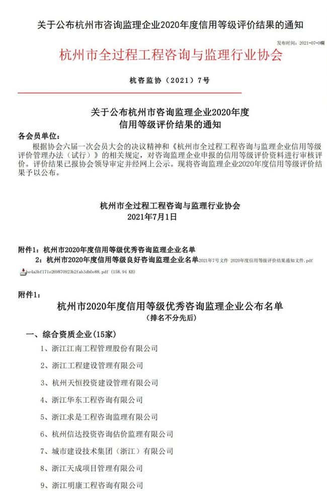 杭州市全过程工程咨询与监理行业2019年度优秀咨询监理企业