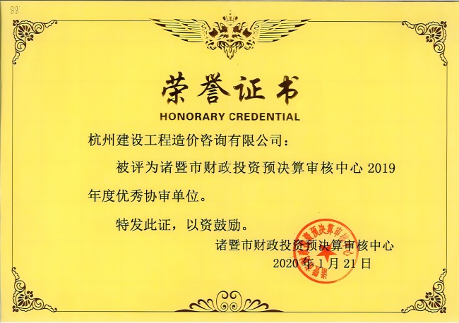 诸暨市财政投资预决算审核中心2019年度优秀协审单位