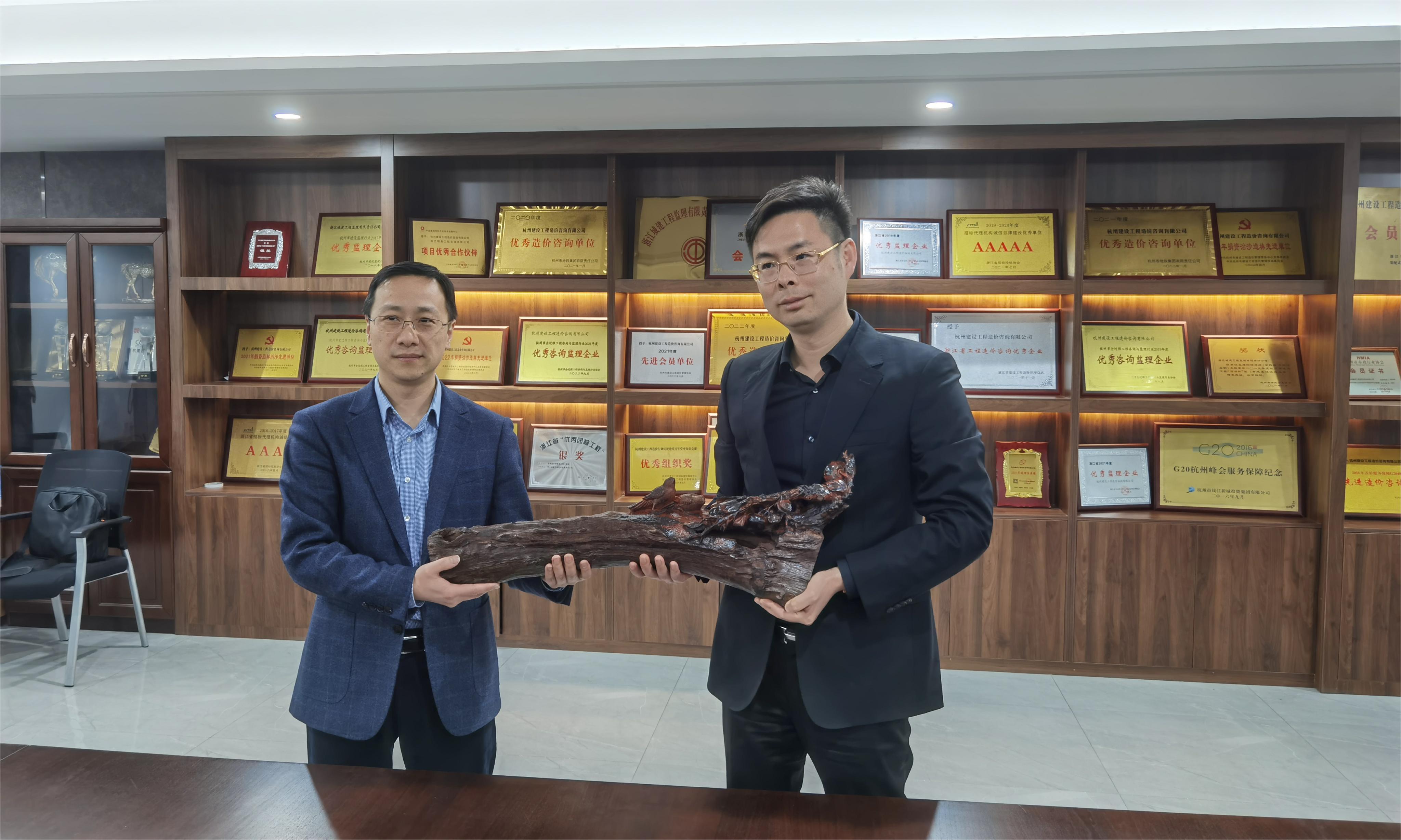 座谈会结束后,赵向炜陪同母校领导老师及各位校友参观了公司。会长高波代表浙大城市学院校友总会工程学院分会向赵向炜校友赠送礼物——喜事连连,祝福校友在今后的道路上有更好更大的发展。
