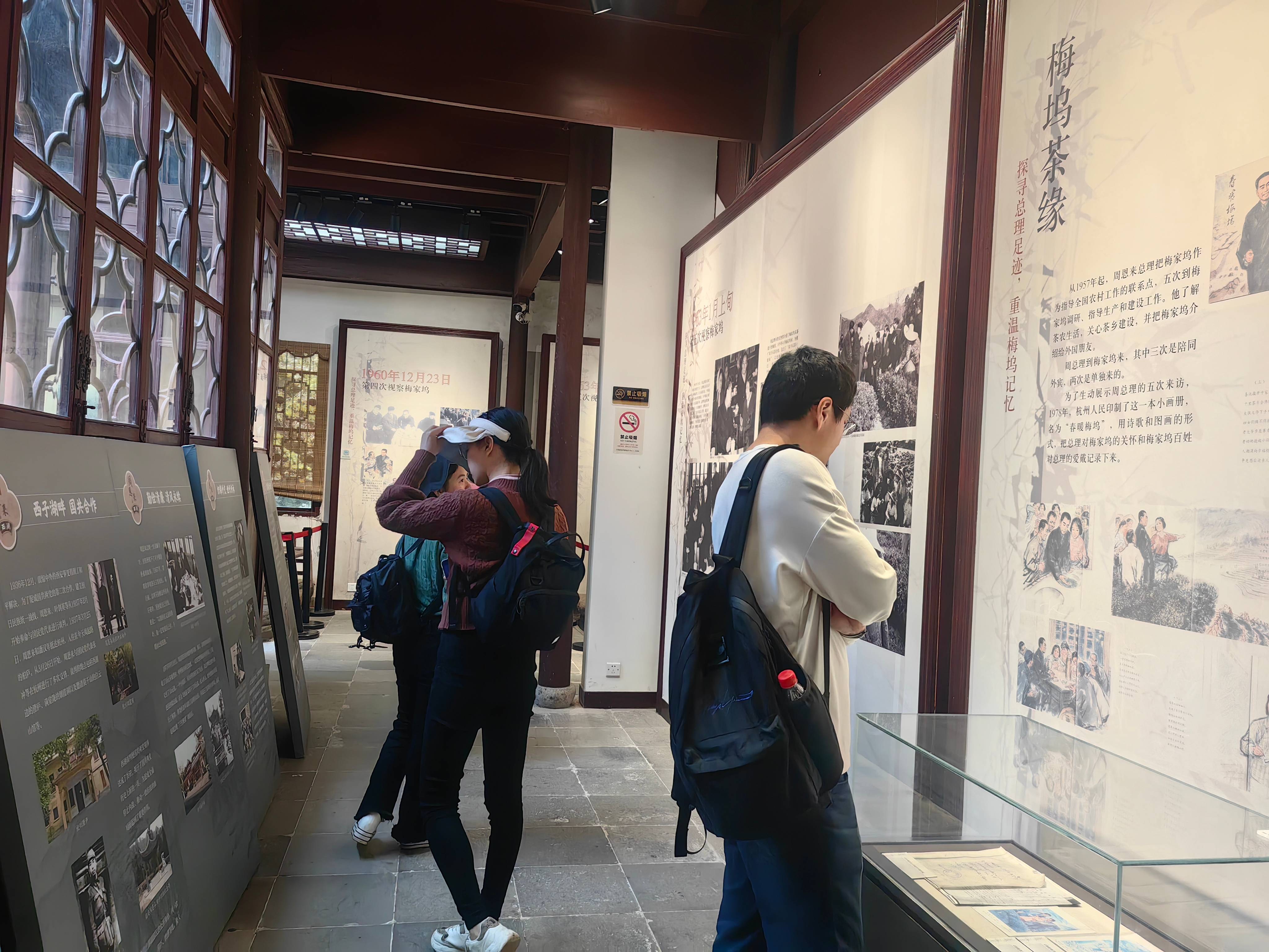4月9日上午,我们抵达了梅家坞村,我们怀着对伟人的无限敬仰和深厚的爱国主义情感,来到梅家坞村周恩来纪念室。在这里不仅加深了我们对周恩来总理伟大人格和卓越贡献的认识,更在团结协作中增强了团队的凝聚力和向心力。