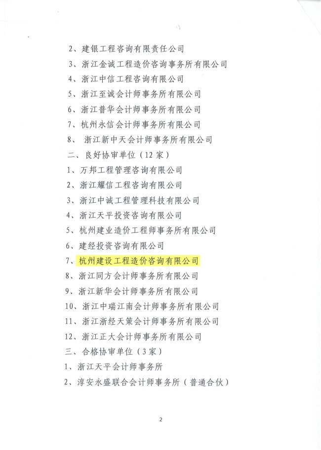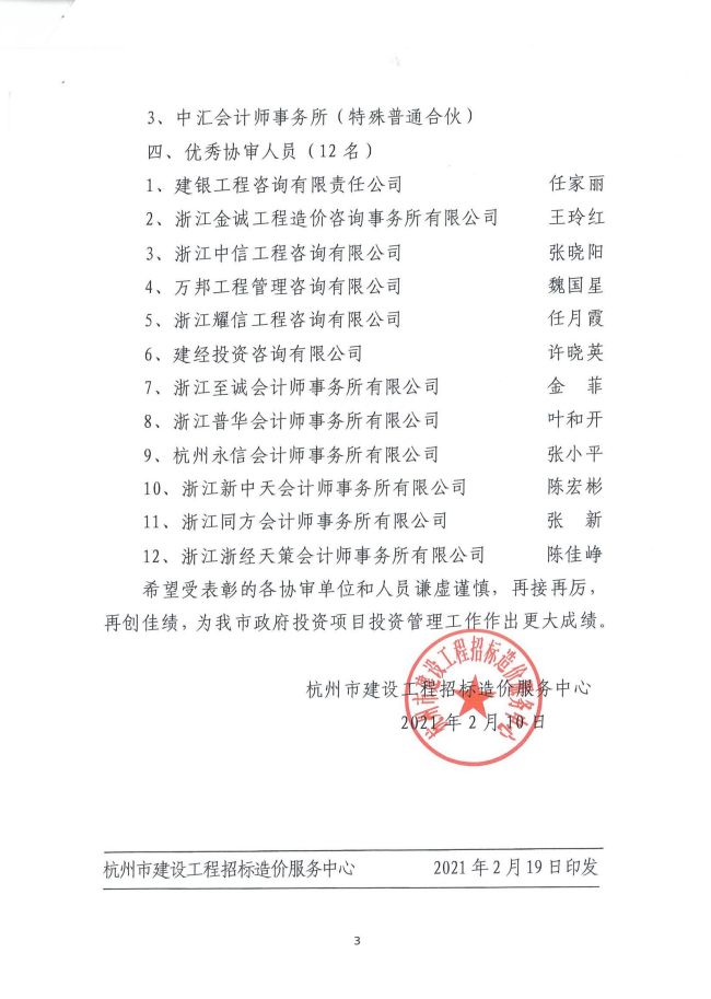 2020年度杭州市政府投资项目概算、财务决算良好协审单位