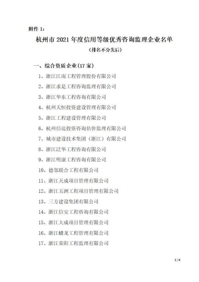 杭州市全过程工程咨询与监理行业2020年度优秀咨询监理企业